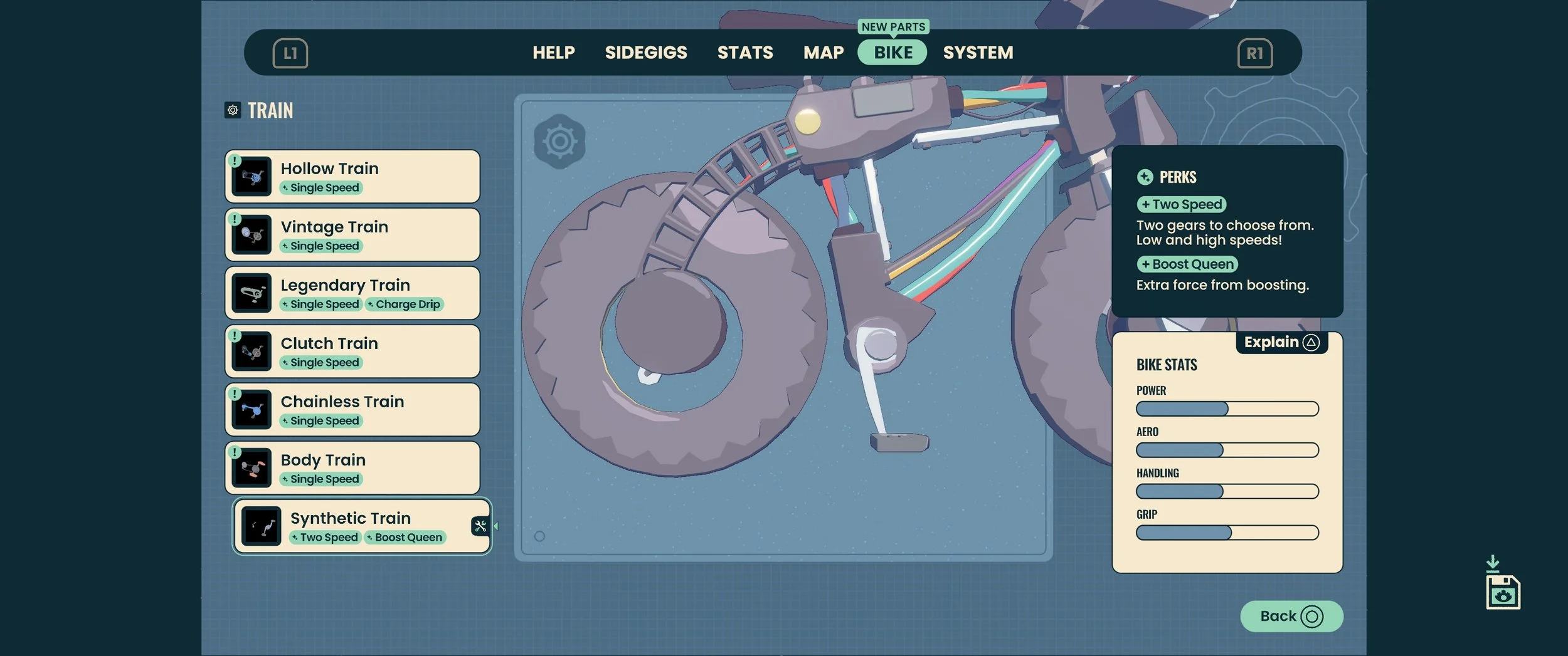 Speaking of gameplay feel, one area I felt Wheel World felt short in was with its parts system. When I sampled this in the demo, I was excited about the prospect of it being some sort of bike RPG. On paper, the parts you acquire from the handful of bike shops or random drops scattered throughout the world are designed to have an impact on the feel of your bike, with four key stat categories to consider: power, aero, handling, and grip. The game is pretty generous with the amount of parts on offer, too, making it seem as if there are a wide range of bike builds you can create. However, after spending a considerable amount of time mixing and matching parts, I didn't feel that this system made a significant difference in my riding experience. Whether I prioritized parts specializing in one trait or the other, the gameplay always felt the same. When it came down to it, I felt the keys to my success lay in my abilities, rather than the parts I chose to upgrade my bike with, or a combination of the two.