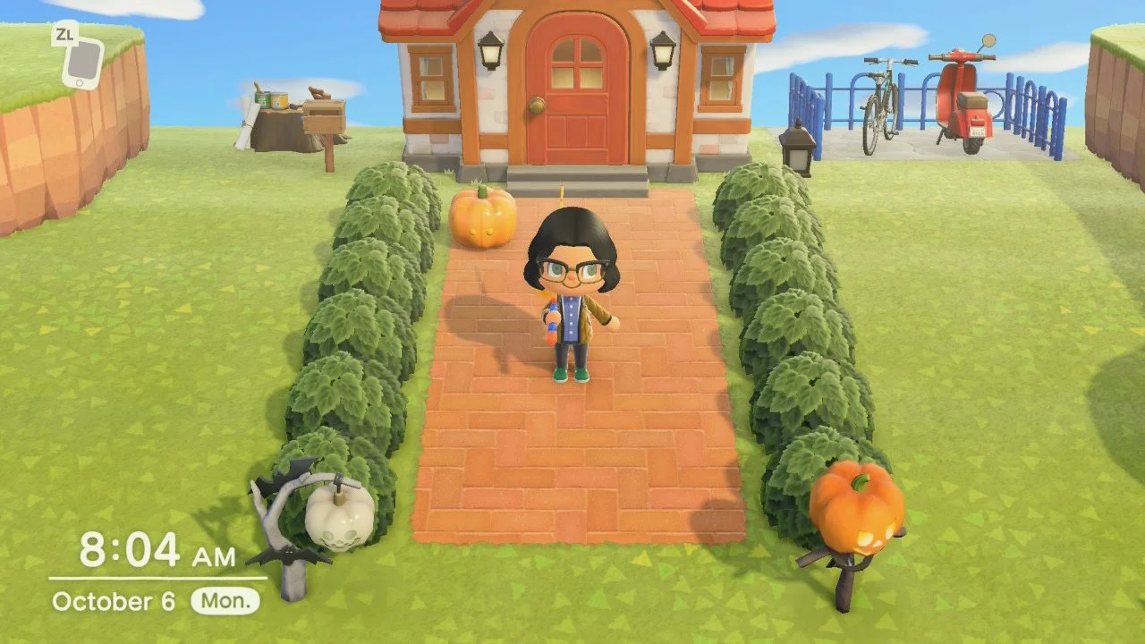 Starting with my house, I decided to relocate from the third-level plateau I moved to last month to a second-level opening that sits directly to the southwest. The layout of this new space has allowed me to be more ambitious with how I plot things in the yard. For example, my walkway is now much longer than it previously was, the side of the house now features a driveway occupied by my bike and moped, and it even has space for some Halloween decorations that I recently put up.